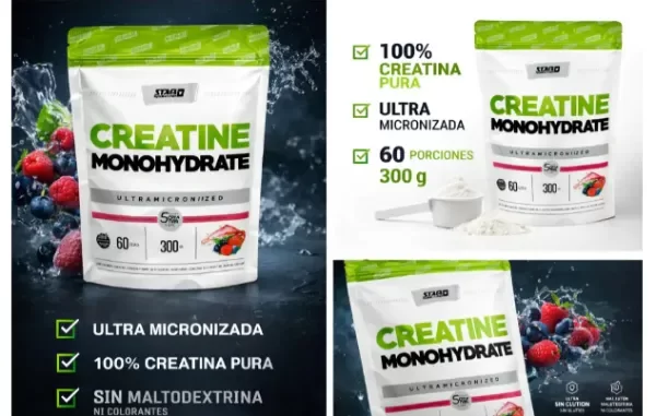 Creatina Monohidrato Star Nutrition 300gr Doypack – Sabor Frutos Rojos, 60 servicios