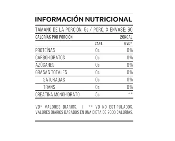 Contiene 5 gr. de creatina pura y tan sólo 20 calorías por porción.