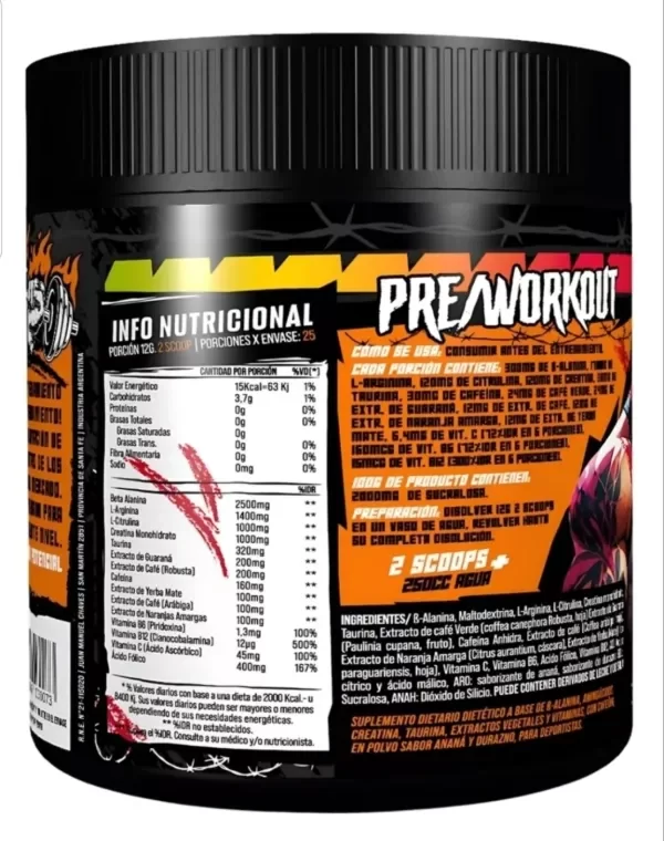 Modo de uso: Se recomienda mezclar una porción de 10g con agua o tu bebida preferida, aproximadamente 30 minutos antes de comenzar tu entrenamiento.