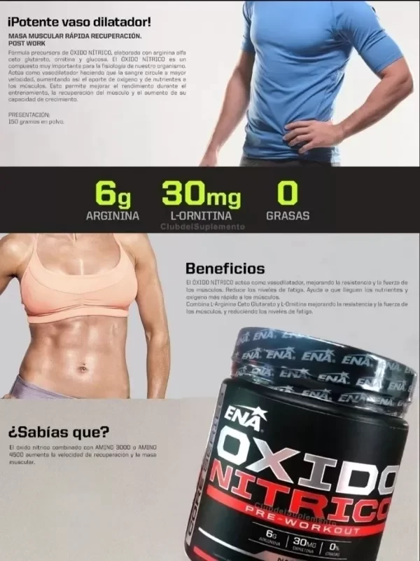 El óxido nítrico es un compuesto muy importante para la fisiología de nuestro organismo. Actúa como vasodilatador haciendo que la sangre circule a mayor velocidad, aumentando así el aporte de oxígeno y de nutrientes a los músculos. Esto permite mejorar el rendimiento durante el entrenamiento, la recuperación del músculo y el aumento de su capacidad de crecimiento.