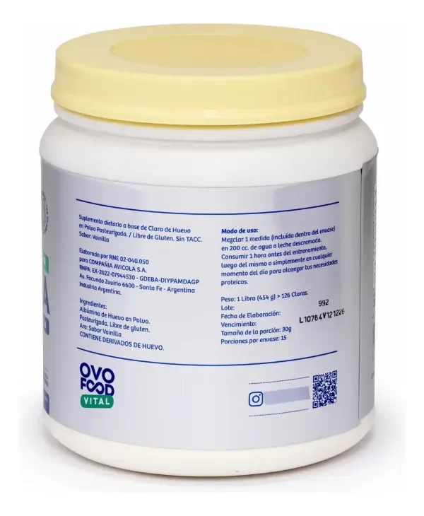 Proteína A Base De Huevo – Proteína de Clara de Huevo Pasteurizada . La elección inteligente para quienes buscan una fuente de proteína pura, limpia y eficiente: Proteína ultra pura: Obtenida de claras de huevo de gallinas criadas libres de jaula. 0 % grasa total: A diferencia de otras proteínas, nuestra fórmula no aporta lípidos innecesarios. Cero lactosa: Ideal para personas intolerantes a la lactosa o que evitan los lácteos. Menos calorías: Casi 30 kcal menos por porción en comparación con una proteína de suero tradicional. Sabores deliciosos: Disponible en chocolate, vainilla o natural. Alta digestibilidad y absorción: Tu cuerpo aprovecha mejor cada gramo de proteína. Natural y responsable: Gallinas libres de jaula para un mejor bienestar animal de nuestras aves. Aporta aminoácidos esenciales: Contiene los nueve aminoácidos esenciales: histidina, isoleucina, leucina, lisina, metionina, fenilalanina, treonina, triptófano y valina.