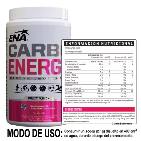 Es una fuente excelente de hidratación instantánea, reponiendo minerales y líquidos antes y durante la actividad, ya que su osmolaridad es óptima y logra que sea absorbida más rápido que el agua. Contiene carbohidratos simples y complejos. Los primeros actúan como fuente inmediata de energía y los segundos proporcionan un nivel alto y sostenido de energía durante más tiempo. Posee capacidad para ayudar a eliminar sustancias tóxicas del organismo. Reforzado con vitamina C, potencia el crecimiento y la recuperación de los músculos. MODO DE USO: Consumir una medida (27g.) disuelta en 350 ml. de agua, 15 minutos antes y cada 45/50 minutos en actividad física.